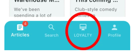 - Tap the “Loyalty” button on the bottom menu (NOTE: If you do not see this button, read below)