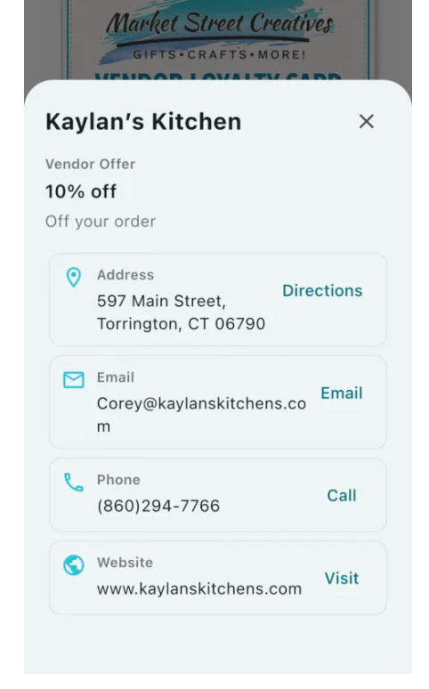You will also see a list of participating businesses within the app. By clicking on any business, you can view full details, including contact information, location, and their specific offer.